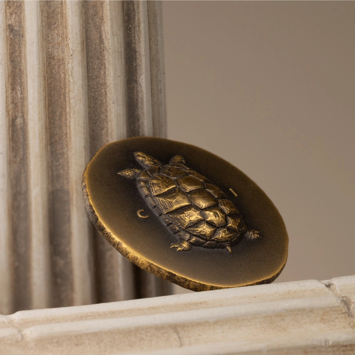 Želva je pomalé a stálé stvoření, které ztělesňovalo myšlenku trvalé síly, a proto byla ve starověkém Řecku oblíbenou volbou mincí. Říká se, že želva byla poprvé vyražena na mincích vyráběných na ostrově Egina.