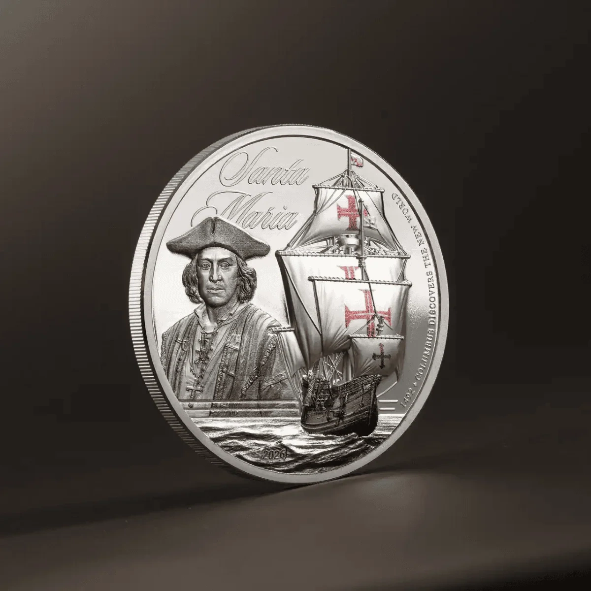 Cookovy ostrovy: Legends of the Seas – Santa Maria, kolorovaná 1 unce stříbra 2026 Proof, je první mince otevírající prestižní sérii Legends of the Seas, věnovanou nejslavnějším lodím dějin a jejich kapitánům, kteří se díky svým výpravám zapsali do historie. Tato emise připomíná Santa Marii – loď, na níž Kryštof Kolumbus v roce 1492 přeplul Atlantský oceán a zahájil éru velkých geografických objevů.
