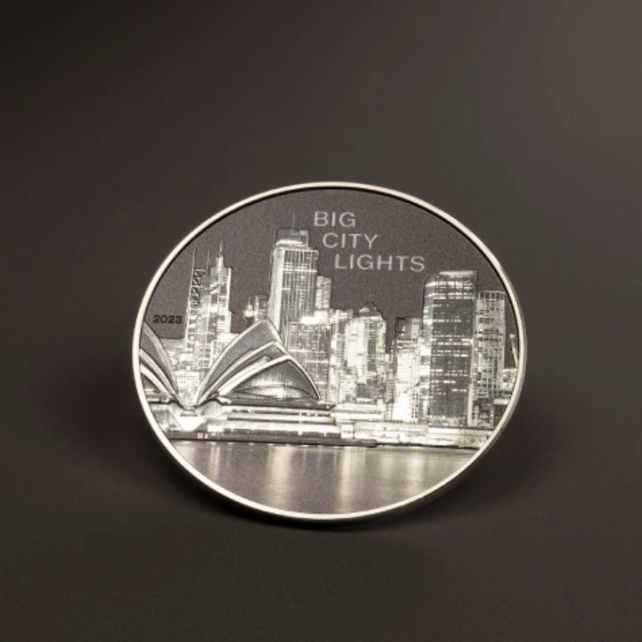 Mince je ze série „Světla velkoměsta“. Více než 5 milionů obyvatel Sydney, tráví své dny a noci v největším australském městě. Kromě neuvěřitelného pobřeží a ikonické pláže Bondi se na minci nachází světoznámá 'Sydney Opera House'.