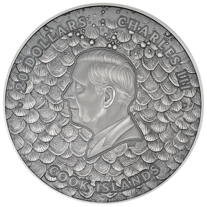 Cookovy ostrovy: Underwater Fantasy - Mořská příšera barevná 3 unce stříbra 2025 Antiqued Coin je jedinečný kus ze série "Underwater Fantasy", který nás zavádí na neobyčejnou cestu do podvodního světa plného tajemných bytostí. Mince je vyrobena s výjimečnou precizností, zdůrazňující detaily tohoto mořského monstra, které vyvolává strach i fascinaci.