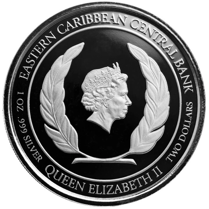 Na lícní straně stříbrné mince je zobrazena podobizna královny Alžběty II. a nápisy „QUEEN ELIZABETH II“ a „EASTERN CARIBBEAN CENTRAL PARK“. Na averzu je rovněž uvedena hmotnost, ryzost slitku a nominální hodnota mince. Autorem averzu je Ian Rank-Broadley.