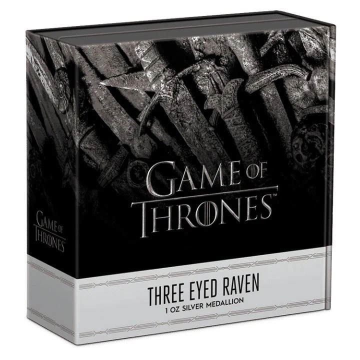 Game of Thrones - Three Eyed Raven 1 oz Silver 2022 Proof je numismatický předmět ze série „Hra o trůny“, který představuje stříbrný medailon s vyobrazením vševidoucího a vševědoucího Tříokého havrana! Exemplář odkazuje na slavnou ságu George R. R. Martina „Hra o trůny“, která vypráví o boji o moc v království Západozemí.