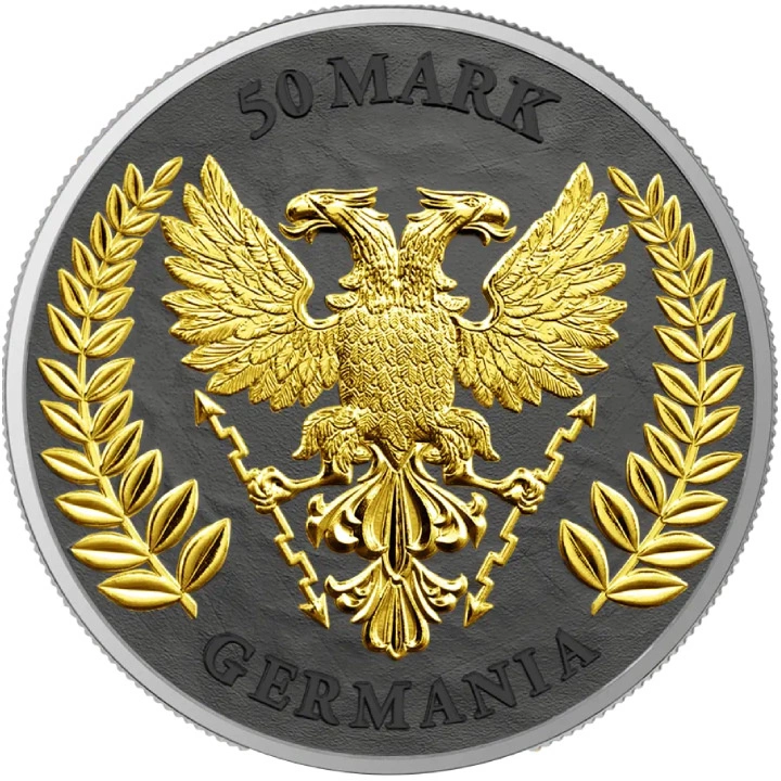 Na reversu stříbrné mince je vyobrazen štít a meč mincovny Germania a dvouhlavý letící orel. Na averzu je nápis „GERMANIA“ a údaje o hmotnosti, ryzosti stříbra a roku vydání.