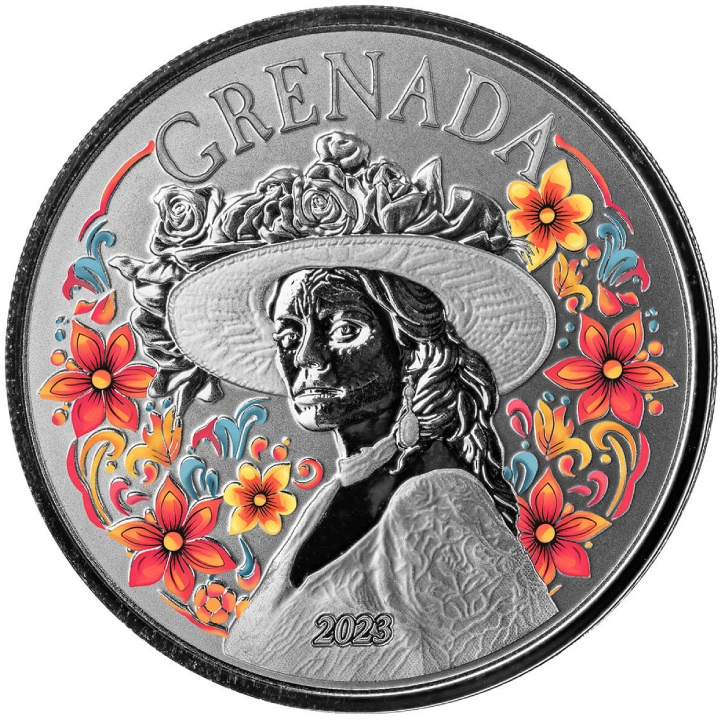 Na reversu je vyobrazena krásná La Diablesse, legendární svůdnice Karibiku. Na reverzní straně se rovněž nachází nápis „GRENADA 2023“.