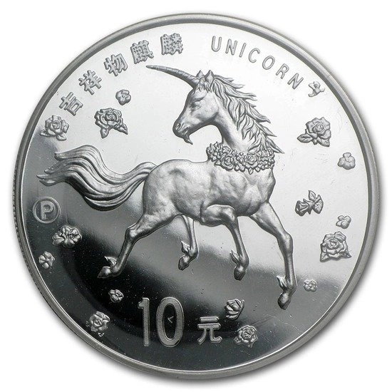 Awers przedstawia Wschodniego Jednorożca, znanego również jako qilin. Poniżej został podany rok bicia monety