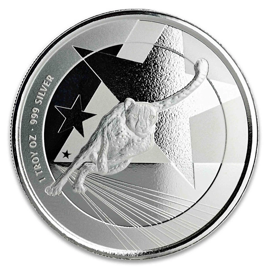 Na reverzní straně je zobrazen spěchající gepard a tři hvězdy. Kromě toho jsou na reverzní straně uvedeny informace o hmotnosti a ryzosti slitku.