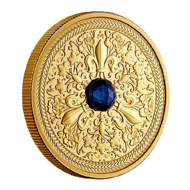 Reverz je opatřen modrým safírem a vyrytými francouzskými symboly.