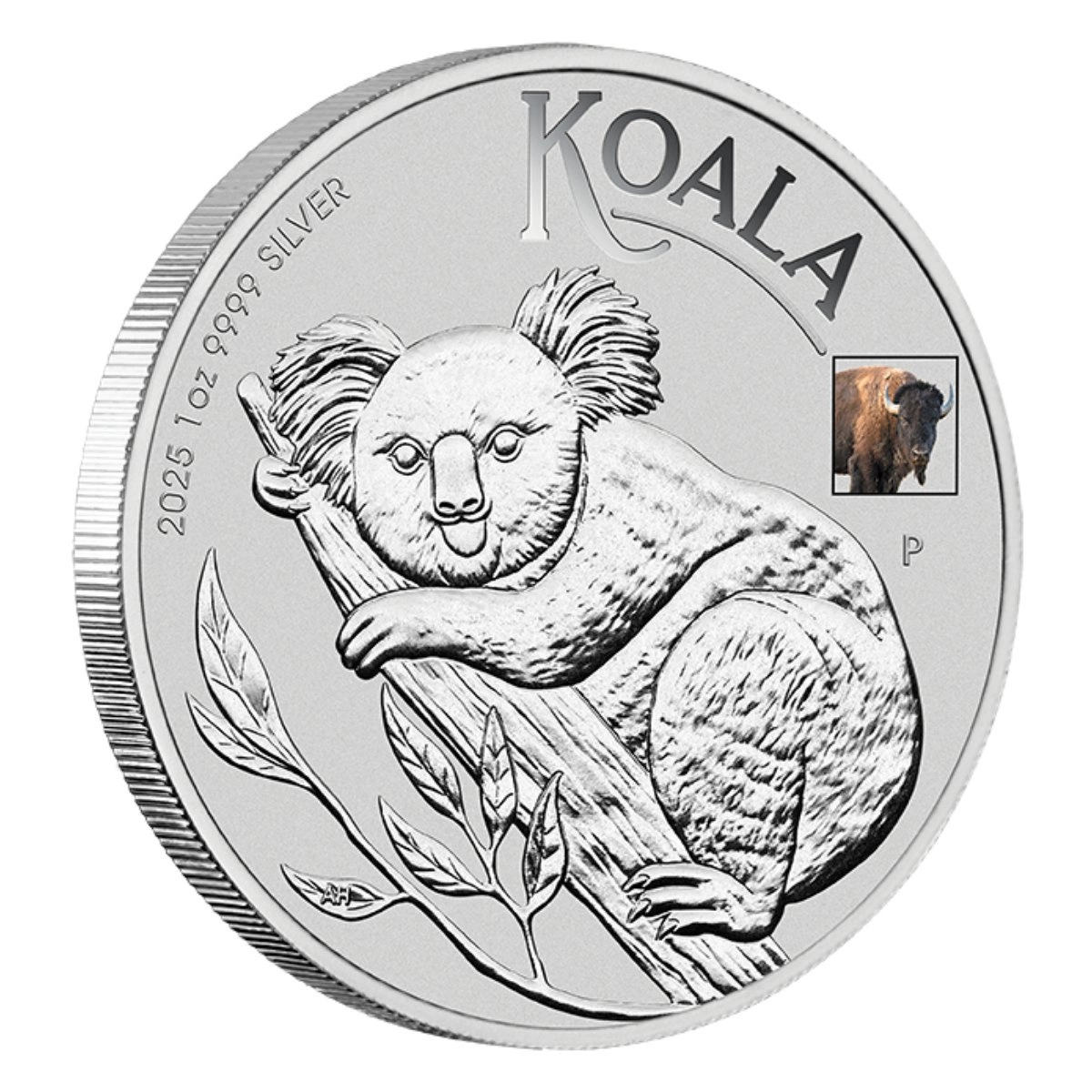 Reverz mince zobrazuje roztomilou koalu objímající kmen stromu mezi listy eukalyptu. Kompozici doplňuje barevný privy mark s vyobrazením bizona – mohutného savce a ikony severoamerické divočiny. Na reverzu jsou také nápisy: „KOALA“, značka mincovny Perth Mint „P“, rok emise a údaje o hmotnosti a ryzosti kovu.