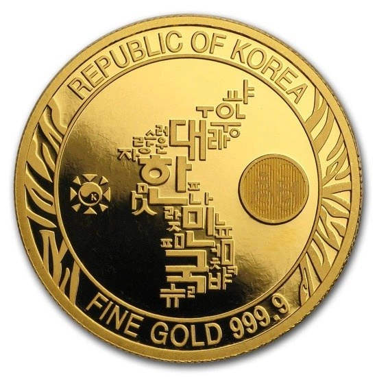 Na rewersie złotego medalu widnieje tygrys, symbol odwagi, siły i powodzenia. Awers medalu przedstawia alfabet Hangul, który układa się w kształt Półwyspu Koreańskiego, po jego lewej stronie widnieje skrypt z symbolem Kraju, a po prawej zabezpieczenie medalu z zastosowanym efektem kątowym.