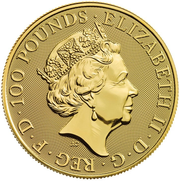 Awers jest modyfikowany w każdym nieparzystym roku wydania. Przedstawia wizerunek Królowej Anglii, Elżbiety II, w koronie. Można na nim również znaleźć informację o wartości nominalnej (100 funtów).