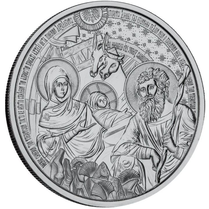 Medaile Bethlehem Nativity 1 oz Stříbra Prooflike je výjimečný produkt, ideální pro vánoční období. Tento kousek představuje cennou památku pro křesťany i pro všechny, kteří si chtějí připomenout narození Ježíše Krista. Patří do sváteční kolekce "Christmas, Holiday".