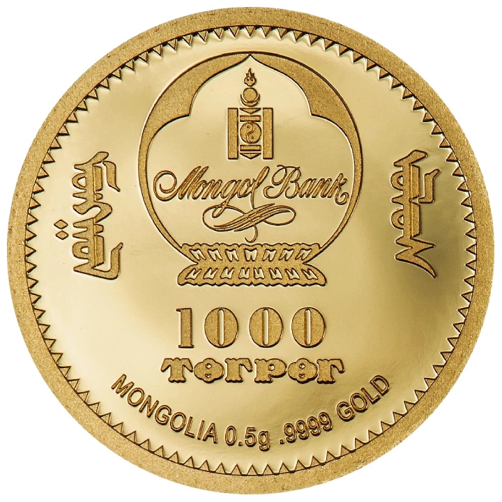 Mince byla vyražena z ryzího zlata Au.9999 o hmotnosti 0,5 gramu a průměru 11 mm ve standardu proof. Náklad mince činí 15 000 kusů. V Mongolsku je plnohodnotným zákonným platidlem. Za vydání tohoto kusu je zodpovědná mincovna CIT Mint - Coin Invest AG.
