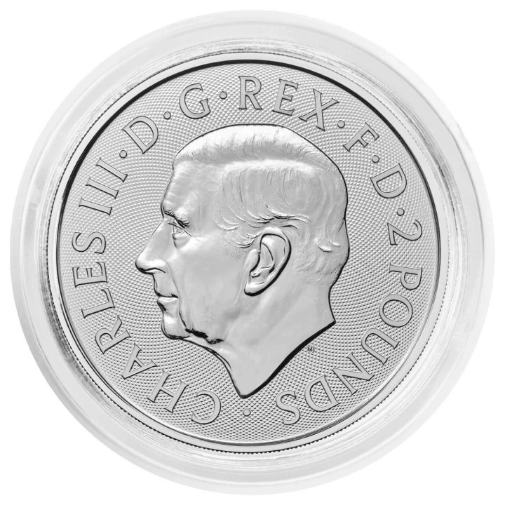 Na averzní straně je zobrazena podobizna britského krále Karla III. a nominál podle návrhu Martina Jenningse.