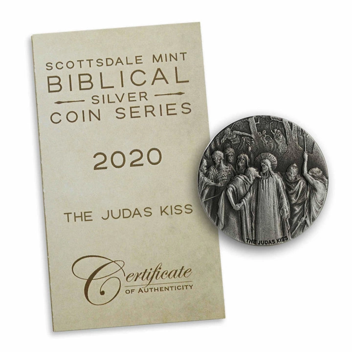 Niue: Biblické - Judův polibek 2 unce stříbra 2020 Proof Antiqued Coin