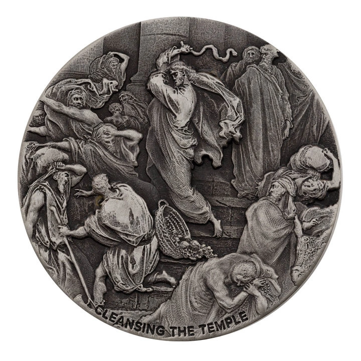 Mince Niue: Biblical - Cleansing The Temple 2 ounce Silver 2022 Proof Antiqued je jedinečný produkt, který má pro katolíky a křesťany zvláštní význam. Mince patří do biblické série. Mince z této série budou představovat významné události z Bible. Sbírka mincí může být zajímavým doplňkem portfolia pro věřící, ať už chtějí učinit kapitálovou investici, nebo pro sběratele, kteří hledají minci s poselstvím.