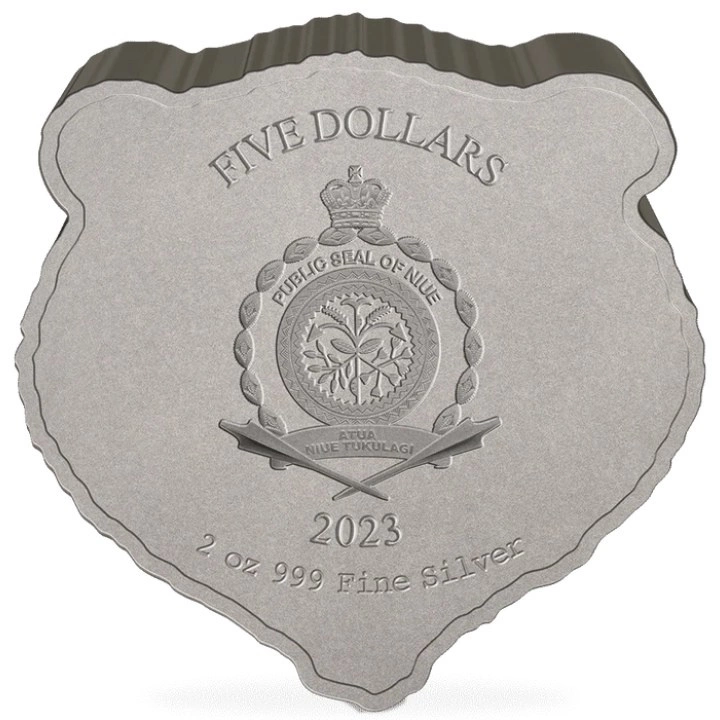 Niue: Divoká příroda – Grizzly Bear 2 unce stříbra 2023 Antique Finish