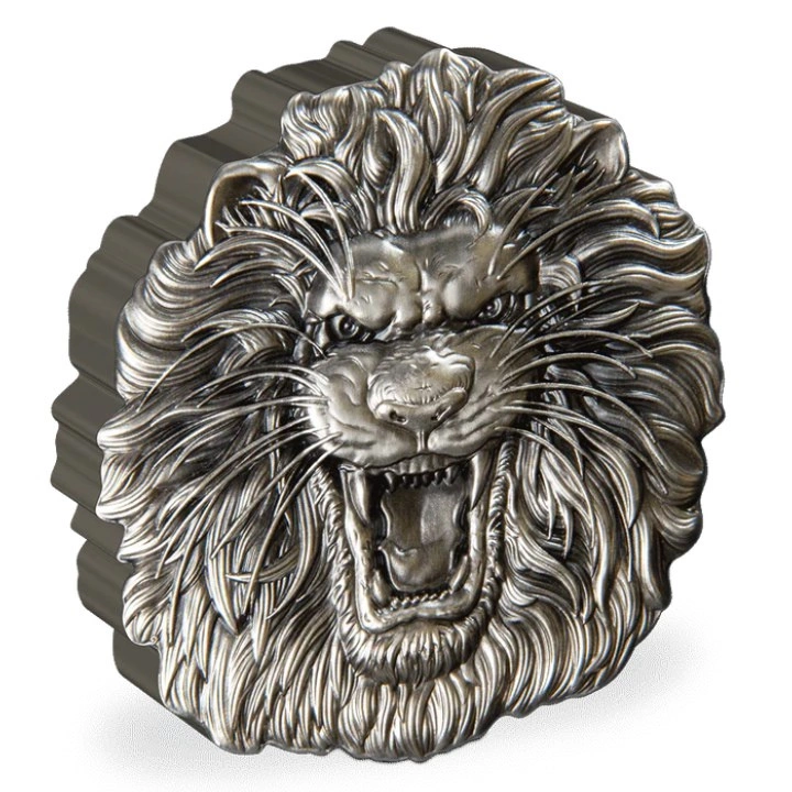 Niue: Divoká příroda – Lev 2 unce stříbra 2022 Antique Finish