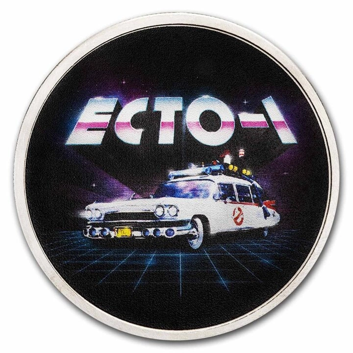Stříbrná mince Niue Valor: Ghostbusters - Ecto-1 Coloured 2 oz Silver 2024 + Die Cast Car byla vyražena u příležitosti 40. výročí uvedení amerického filmu Krotitelé duchů. Světová premiéra filmu se uskutečnila 7. června 1984