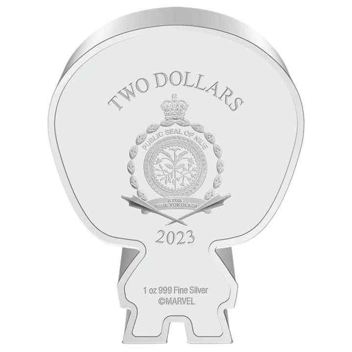 Na averzu stříbrné mince je vyobrazen znak státu Niue. Na lícní straně je uvedena nominální hodnota, hmotnost, ryzost slitku, rok vydání mince a autorská práva vlastněná společností Marvel.