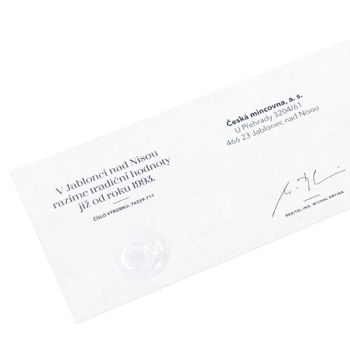 Autorem návrhu tohoto unikátního kusu je Asamat Baltaev, DiS. a vyrobila jej Česká mincovna, stejně jako je oficiálním zákonným platidlem v Niue. Mince má záruku legálnosti, ryzosti slitku a původu kovu. Výrobek je dodáván v originální krabičce spolu s certifikátem pravosti.