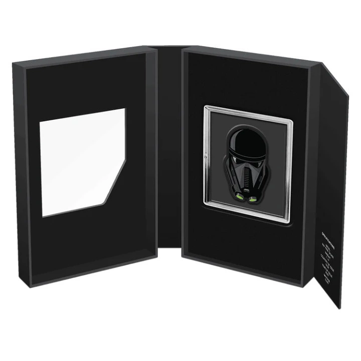 Niue: Star Wars Tváře Impéria - Death Trooper barevná mince o hmotnosti 1 unce stříbra 2022 proof je mince ze série „ Tváře Impéria“, na které je vyobrazena helma Death Troopera. Jednalo se o elitní vojáky, kteří sloužili jako osobní strážci a vykonavatelé moci představitelů Galaktického impéria