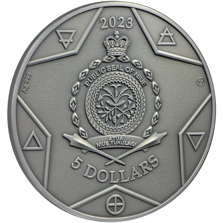 Na vertu stříbrné mince je zobrazena hvězda se znakem Niue a nominální hodnota, ryzost slitku a rok ražby mince.
