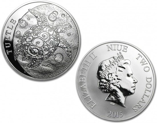 Na rewersie znajduje się podobizna żółwia szylkretowego, znanego również jako Taku, pływającego wzdłuż dna oceanu, pośród maleńkich bąbelków. Na rewersie znajduje się także informacja o próbie srebra i wadze monety.