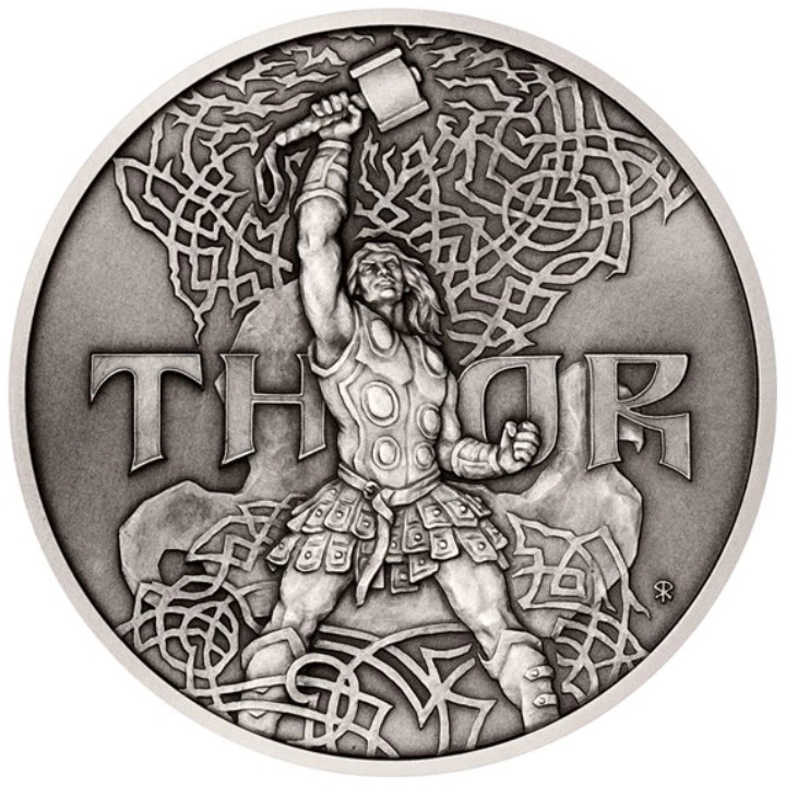 Mince Niue: Univerzální bohové - Thor 5 oz Silver 2022 je další mincí ze série „Univerzální bohové“ připomínající starověké bohy z celého světa. Na minci je vyobrazen Thor - jeden z hlavních severských bohů z dynastie Ásů (syn Ódina a Jörð, manžel Sif), protějšek jihogermánského Donara, boha hromu a blesku a životních sil.