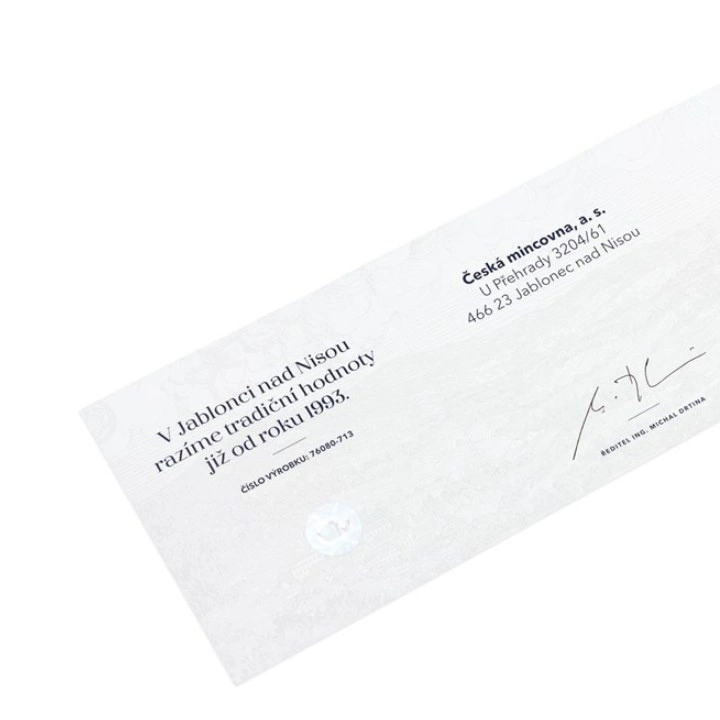 Exemplář byl vyražen v ryzím slitku Ag.999, váží 5 trojských uncí a má průměr 65 mm. Výrobek byl vyražen v nákladu pouhých 500 kusů.