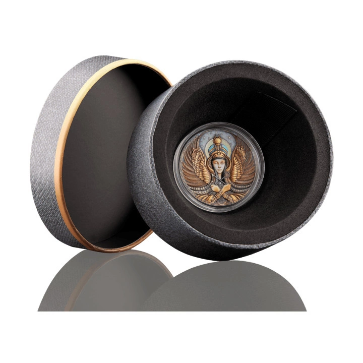 Niue: Ženy – Issis Wings barevná 5 $ stříbro 2022 Prooflike High Relief