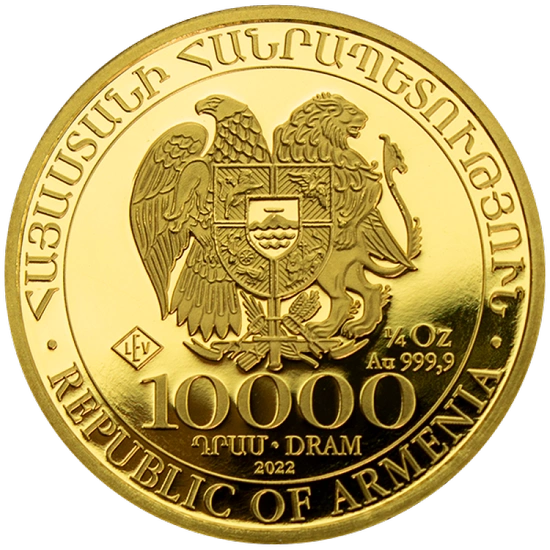 Na reversu mince je vyobrazen arménský státní znak spolu s nominální hodnotou ražby 10000 dramů a rokem vydání. Na pravé straně pod erbem je uvedena hmotnost a vzorek zlata, v němž byla mince vyražena. Při spodním okraji je nápis „Arménská republika“.