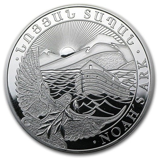 Ekskluzywna moneta inwestycyjna. Wyłączne prawo udzielania koncesji na produkcję tej monety posiada Centralny Bank Armenii, jednakże za produkcję odpowiedzialna jest prywatna, niemiecka mennica Leipziger Edelmetall Verarbeitung. Jako oficjalna waluta Republiki Armenii podlega ścisłej kontroli: jakości, wagi i czystości, dzięki czemu otrzymujemy produkt o najwyższej jakości i czystości srebra .999. Znana wszystkim historia Arki Noego znalazła swoje upamiętnienie na monecie bulionowej.