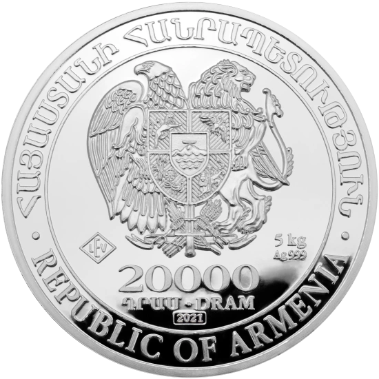 Rewers monety przedstawia herb Armenii wraz z wybitym nominałem 20000 dram oraz rokiem wybicia. Z prawej strony, pod herbem, widnieje gramatura oraz próba srebra, w której została wybita moneta. Przy dolnym rancie znajduje się napis "Republic of Armenia".