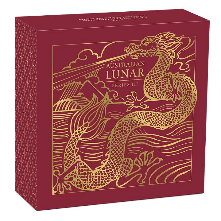 The Perth Mint: Lunar III - Year of the Dragon 1/4 oz Gold 2024 Proof je pátý kus ze série Lunar III. Předchozími mincemi této série byly Rok myši 2020, Rok buvola 2021 a Rok tygra 2022, Rok králíka 2023. Série Lunar odkazuje na 12 zvířat, která představují čínský lunární kalendář. Rok draka 2024 patří drakovi a v čínské mytologii je to majestátní zvíře, které obývá řeky, jezera a oceány a brázdí oblohu. Čínské znamení zvěrokruhu draka spadá do let: