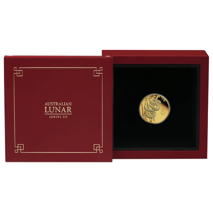 The Perth Mint: Lunar III - Year of the Snake 1/10 ounce Gold 2025 Proof je šestou emisí ze série Lunar III. Předchozí mince této série byly Rok myši 2020, Rok buvola 2021 a Rok tygra 2022, Rok králíka 2023, Rok draka 2024. Lunární série odkazuje na 12 zvířat, která jsou zástupci čínského lunárního kalendáře. Rok 2025 patří hadovi a je vnímán jako období hlubokých úvah, moudrosti a vnitřního rozvoje. Hadi mají pověst filozofických myslitelů, kteří jsou trpěliví a mají sklon k přemýšlení. Čínské znamení zvěrokruhu hada spadá do let: