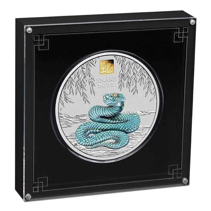 Slitková mince Mincovny Perth Mint: Lunar III - Rok hada 1000 gramů stříbra 2025 je šestou emisí série Lunar III. Předchozí mince této série byly Rok myši 2020, Rok buvola 2021 a Rok tygra 2022, Rok králíka 2023, Rok draka 2024. Lunární série odkazuje na 12 zvířat, která představují čínský lunární kalendář. Rok 2025 patří hadovi a je vnímán jako období hlubokých úvah, moudrosti a vnitřního rozvoje. Na reverzní straně je navíc umístěna 1gramová zlatá vložka „privy mark“.