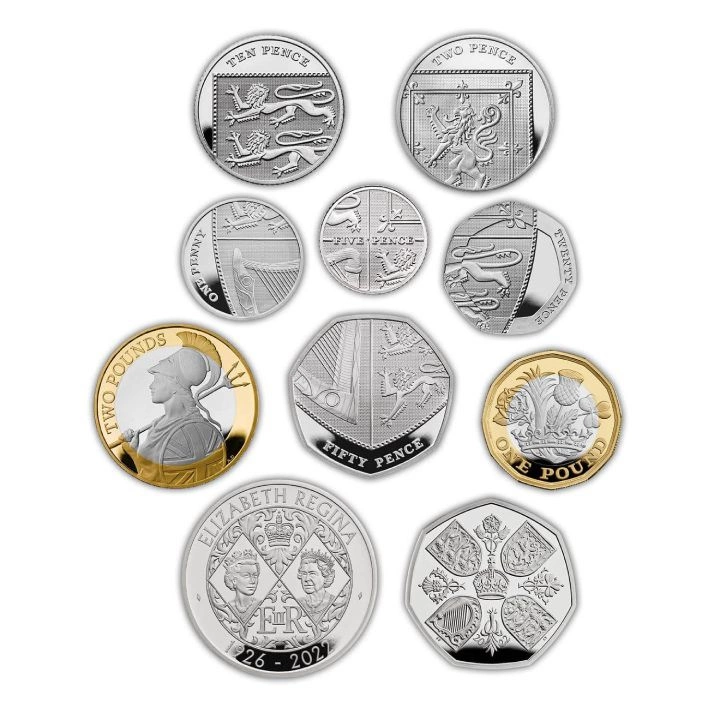 Sada 10 mincí Jejího Veličenstva královny Alžběty Platina 2022 Proof