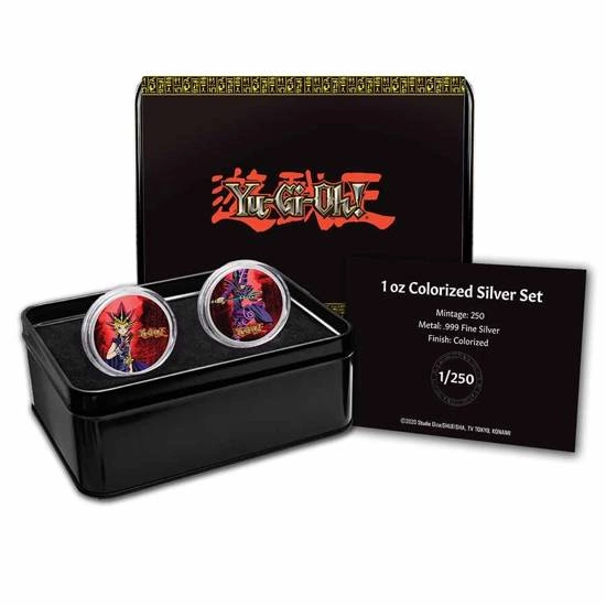 Sada 2 mincí Niue: Yu-Gi-Oh! Yami Yugi, Dark Magician barevný – 25. výročí 2 x 1 unce stříbra 2022