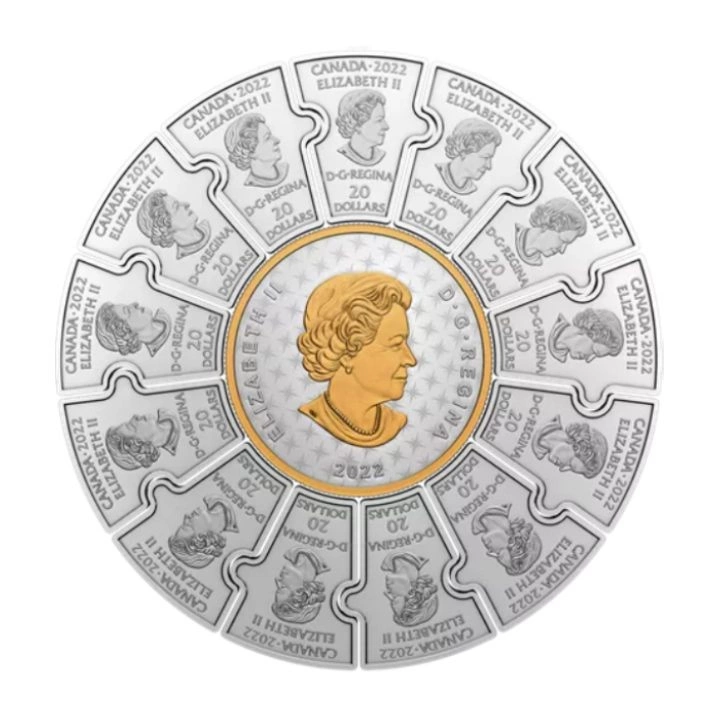 Sada Kanada: Kanadské pasáže barevná 14 stříbrných mincí puzzle 2022 Proof