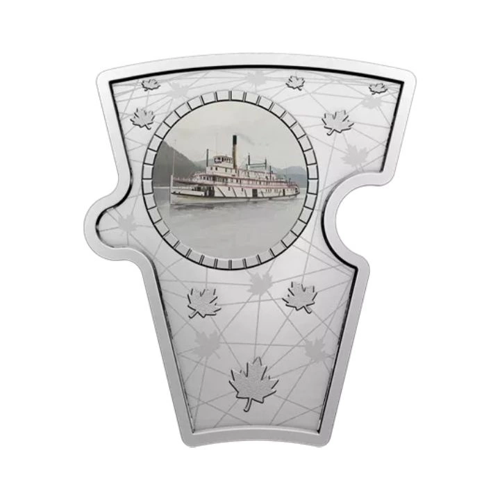 Kanada: Kanadské průjezdy barevná sada 14 stříbrných skládačkových mincí 2022 Proof představuje historicky inspirované ikonické dopravní prostředky související s vývojem dopravy v Kanadě.
