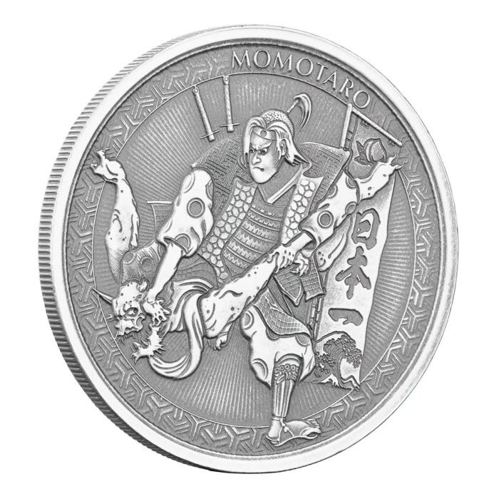 Mince Samoa: Série Legendy Japonska - Momotaro a démon pokořený ve stylu Ukiyoe 1 oz stříbrná mince 2020 Antiqued je první mincí ze série Legendy Japonska. Mince série Legendy Japonska budou obsahovat 2 návrhy v různých stylech - moderní Anime a klasické Ukiyoe. Měny odkazují na legendu MOMOTARO, kterou znají všichni Japonci.