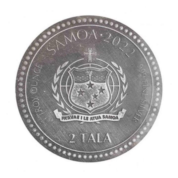 Stříbrná mince byla vyražena z ryzího stříbra Ag.999 o hmotnosti 1 trojské unce ve starožitném standardu. Mince má limitovaný náklad pouhých 2 000 kusů. Na každý kus se vztahuje záruka vlády Samoy ohledně legálnosti, ryzosti vzorku a původu slitku a je plnohodnotným zákonným platidlem na ostrovech Samoa.