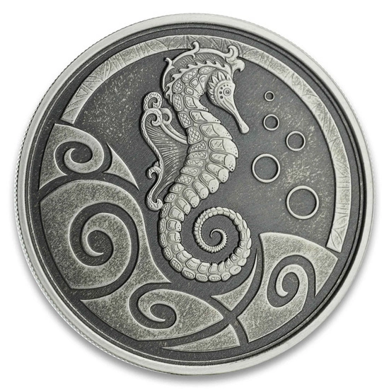 Samoa: Mořský koník 1 unce stříbra 2019 Antiqued Coin