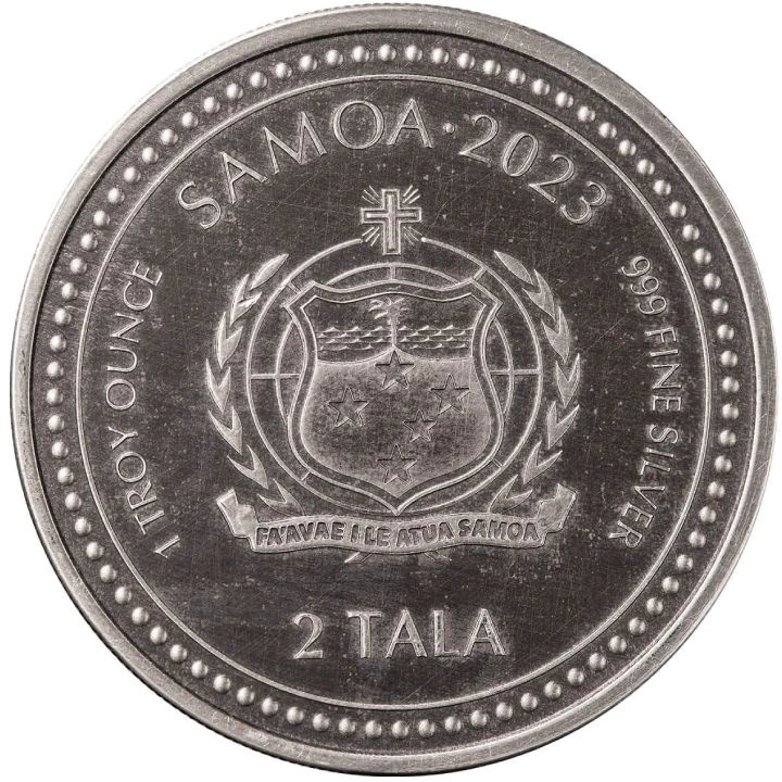 Na averzu stříbrné mince je vyobrazen znak Samoy a nápis „SAMOA 2023“. Na lícní straně jsou dále uvedeny údaje o vydávající zemi, nominální hodnota mince, hmotnost a ryzost slitku.