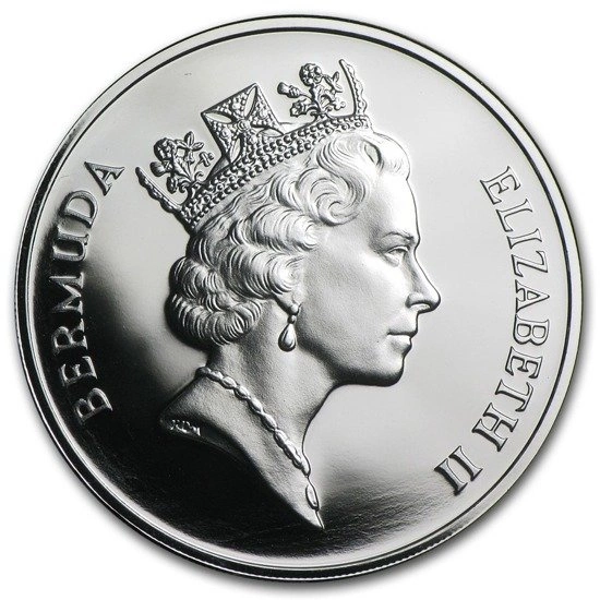 Awers palladowej monety przedstawia żaglowiec Sea Venture.
