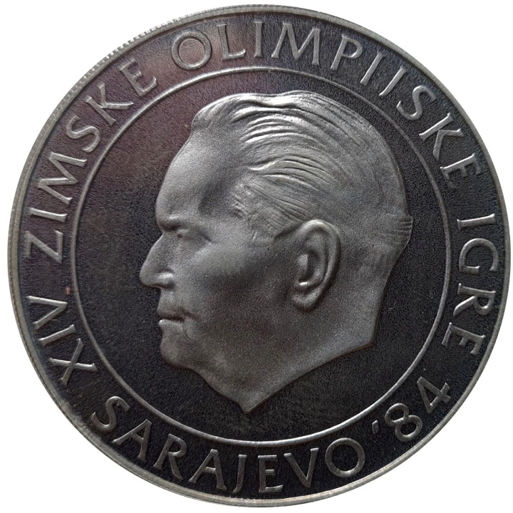 Na reverzních stranách jsou vyobrazeny: na 100 dináru - lední hokej, krasobruslení, boby, rychlobruslení; na 250 dináru - pohled na Sarajevo, artefakt, hrobky Radimlja, vesnice Jajce, Titova hlava. NA 500 dinárů - Sjezdové lyžování, Skoky na lyžích, Biatlon, Běh na lyžích, Slalom na lyžích. Na rubové straně je rovněž nápis: „XIV ZIMSKE OLYMPIJSKE IGRE SARAJEVO '84“.