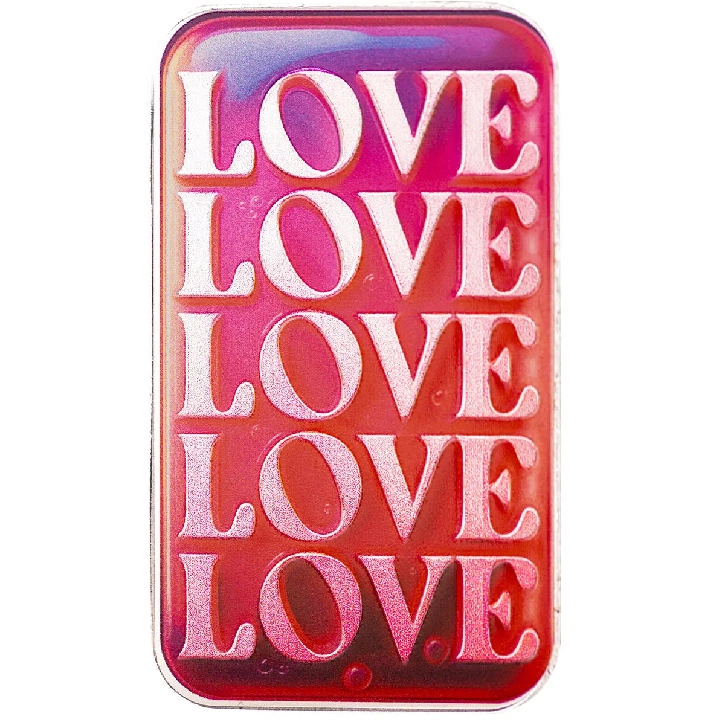 Na reversu se nachází barevný motiv s nápisem "Love Love Love...", který symbolizuje univerzální a nadčasovou sílu lásky. Je to ideální volba pro ty, kteří chtějí kombinovat investice do vzácných kovů s pozitivními a inspirujícími hodnotami.