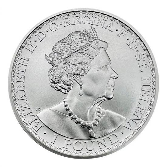 Averz stříbrné mince zdobí obraz královny Alžběty II. a nápisy „ST. HELENA“ a ‚ELIZABETH II‘. Na averzu jsou rovněž uvedeny údaje o nominální hodnotě mince. Autorem averzu je Ian Rank-Broadley.