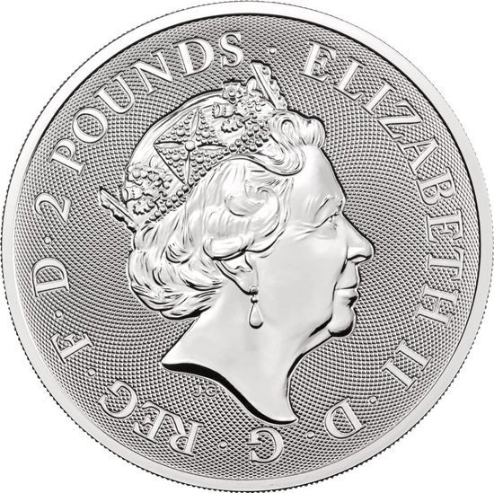 Na awersie uwieczniono portret Królowej Elżbiety II w koronie oraz nominał monety (£2).