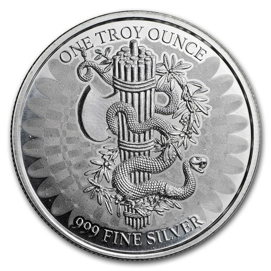 Na rewersie znajduje się fasces, symbol zbiorowej mocy wraz z owiniętym wokół niego wężem